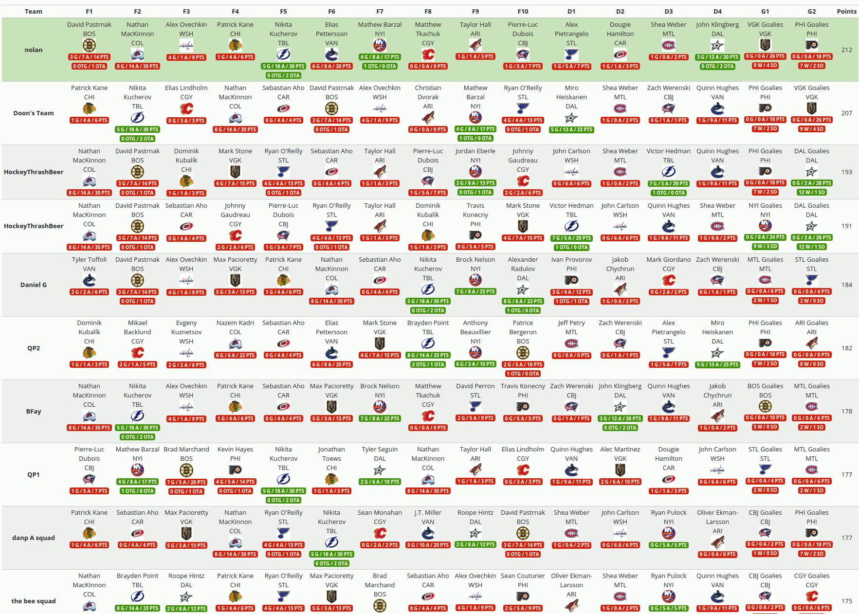 Pool standings are updated in real time. See a detailed breakdown of each player's contribution. Pool participants always have the same number of active players remaining in the playoffs so it's anybody's game!